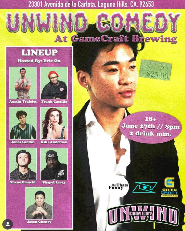 Join us for another night of top-notch comedy on June 27th at 8PM at @gamecraftbrewing . Produced by @unwindcomedy . Doors open at 7:30PM. A two-drink minimum applies during the show, so enjoy some drinks while you laugh.